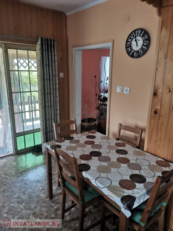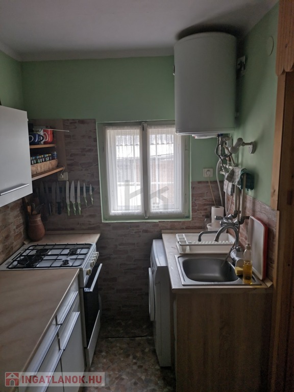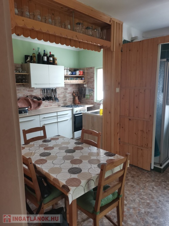 -a 60 m2-es téglaépületben a földszinten nappali, konyha